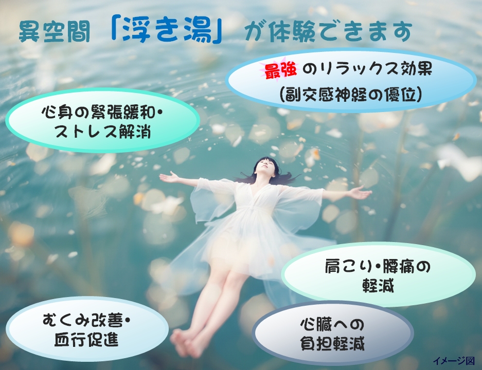 重力から解放される瞬間の心地よさが、明日への活力をチャージします。
